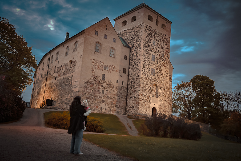 The port area was quiet and almost eerily still. Most places were closed, and there was hardly any sign of life, aside from a few scattered historic houses and the towering presence of Turku Castle, its medieval stone walls softly illuminated in the pale northern light.