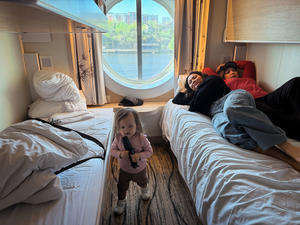 Despite all the entertainment and scenery, we were still feeling the weight of jet lag, so we made the decision to spend most of the 5-hour crossing napping in our cabin.