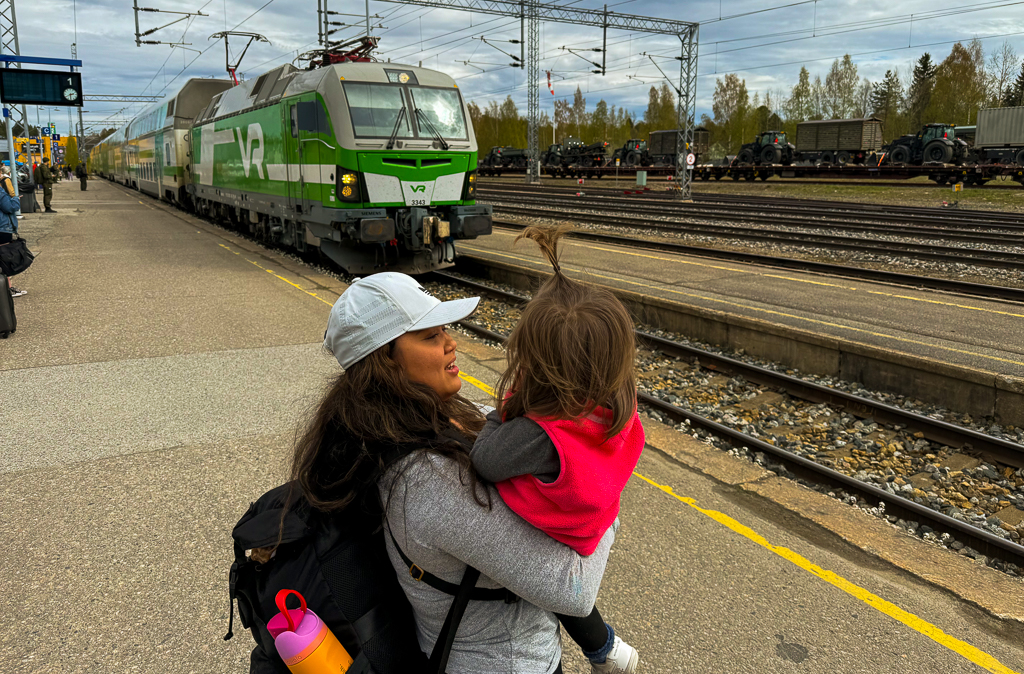 The next morning, we woke early and took a taxi to the Turku train station to begin our 8-hour rail journey to Kajaani, deep in northern Finland. We had one connection near Helsinki, and knowing how long the day would be, I decided to book business class tickets for a bit more comfort and extra space for Indie.