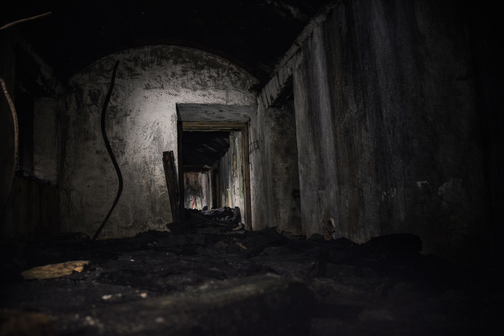 The air grew damp and foul. The ground was slick with water, broken glass glittered under my headlamp, and rusted rebar curled menacingly from the walls and floors.